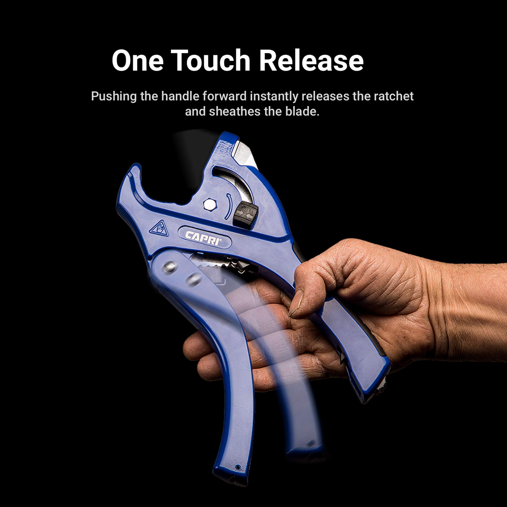 - Blade with telescoping mechanism remains sheathed in the blade guard until the tool is engaged. Blade slider lets you quickly move the blade forward to meet the pipe instead of slowly ratcheting forward. Pushing the handle forward instantly releases the ratchet and sheathes the blade