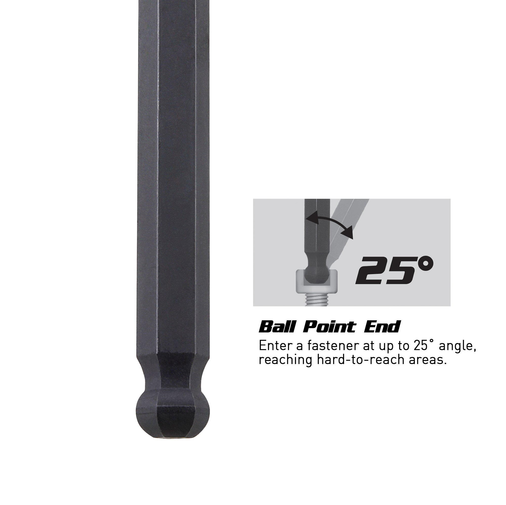 - Ballpoint end for hard to reach areas, allowing up to 25-degree entry angle